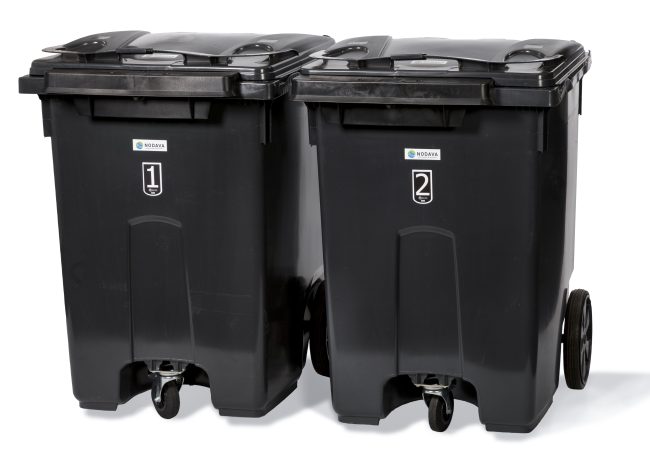 I Nodava-appen finns en omfattande sorteringsguide som hjälper dig att sortera rätt. Du får också en push-notis när det är dags att ställa ut fyrfackskärlen för tömning.
